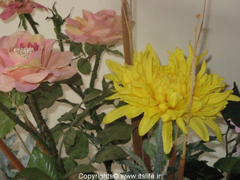 Having fresh flower arrangements everyday is an unrealistic expectation. This void can be filled in by arranging artificial flowers in interesting containers to perk up a room. Now-a-days, the market is filled with a choice of beautiful and realistic looking flowers and foliage. Pick up some of these and arrange to your hearts content.