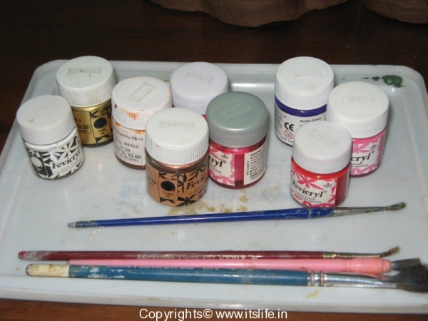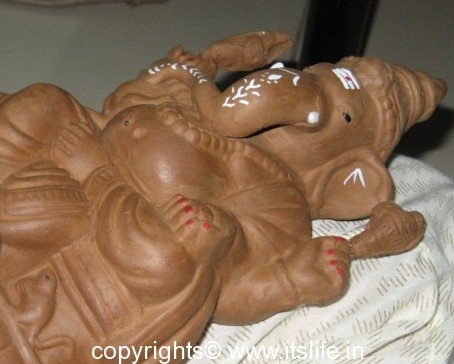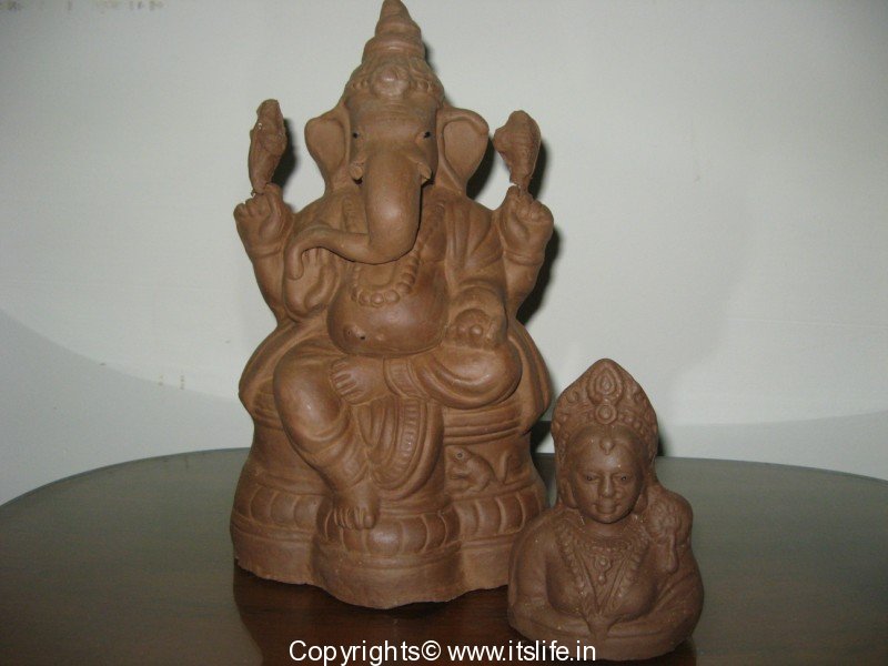 When the idols of Ganesha Gowri are immersed in the various natural water bodies, the chemical paints used to paint the Ganesha Gowri Idols are causing a lot of pollution and killing many water lives. So, this year we opted for the eco friendly Ganesha-Gowri idol and painted them using Water and Fabric colors.
