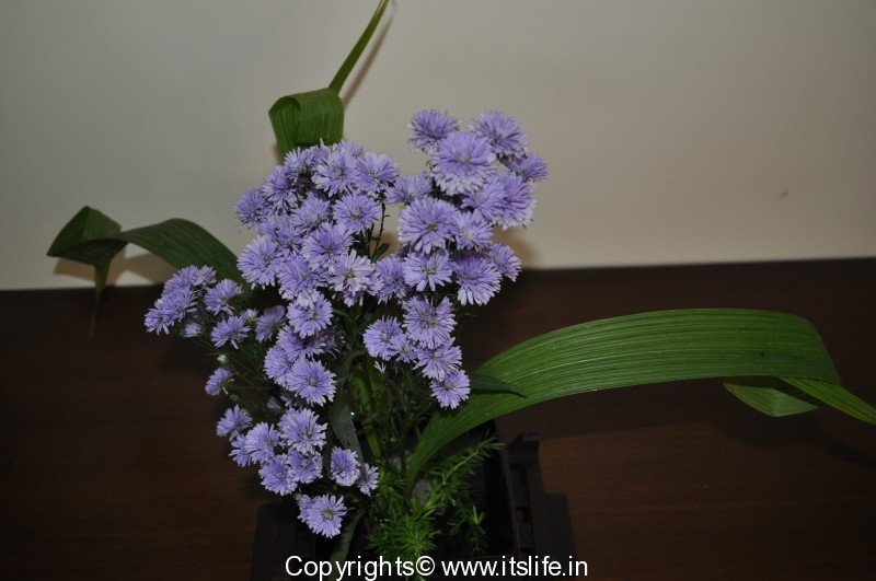 Fold the leaves inwards and fix with a small stick. Arrange as shown in the pictures.