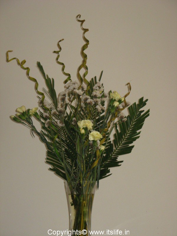 Arrange the Palms at the back and arrange the other flowers and strips as shown in the pictures.