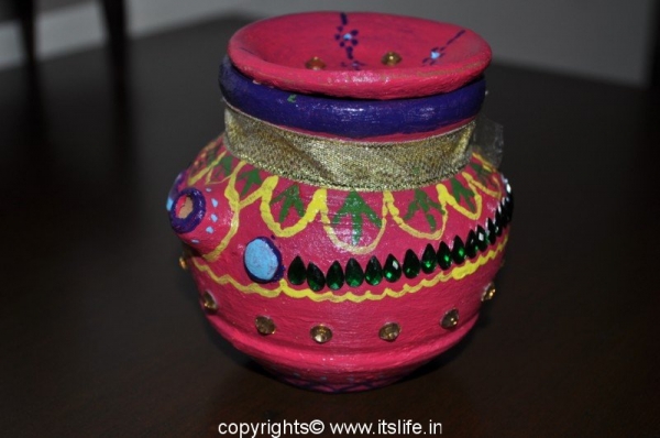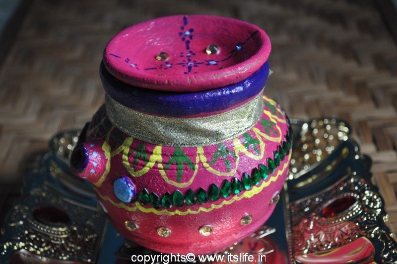 This month is Karwa Chauth and women delve deep into preparation for the festival.  Decking themselves up will be high on agenda as well as decorating the Karwa.  Here is a small demonstration on Karwa Decoration.