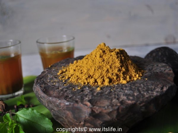 Kashaya is a decoction prepared by boiling a powder prepared using herbs and spices. This home remedy when consumed gives relief from common cold and cough. If consumed everyday gives very good immunity against many viral diseases. A kind of immunity booster!