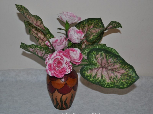 Tape the wire with the green tape. Add leaves as you tape the stem.
