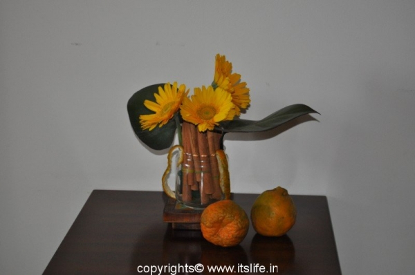 Cinnamon used in the arrangement adds spice to Spicy Flower Arrangement.