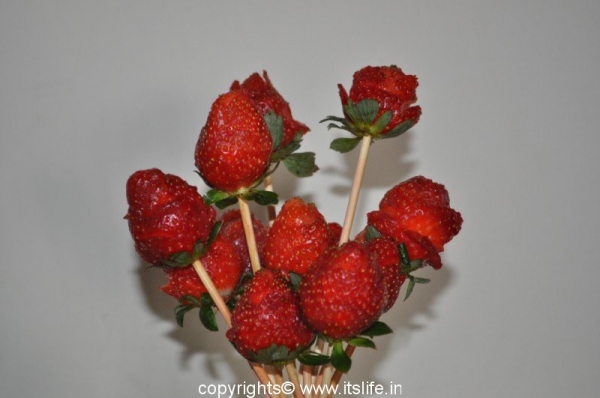 Strawberry Roses are very simple to make using Strawberries.