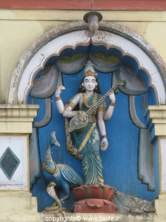 Goddess Saraswathi is the god of knowledge and literacy and tomorrow is the day when children keep their books in front of the goddess and pray.