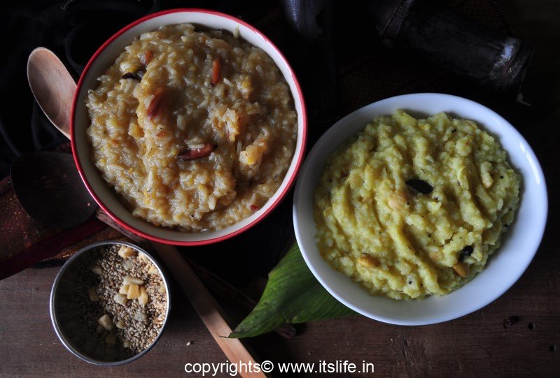 In Karnataka this festival is known as Makara Shankranthi and is celebrated for 2 days. The first day is Bhogi and on this day people take oil head bath and the delicious Huggi and Gojju is prepared. This is a rice dish prepared using Rice and split Green Gram with spices. In North Karnataka Sajji/Bhajra Roti is prepared on Bhogi.