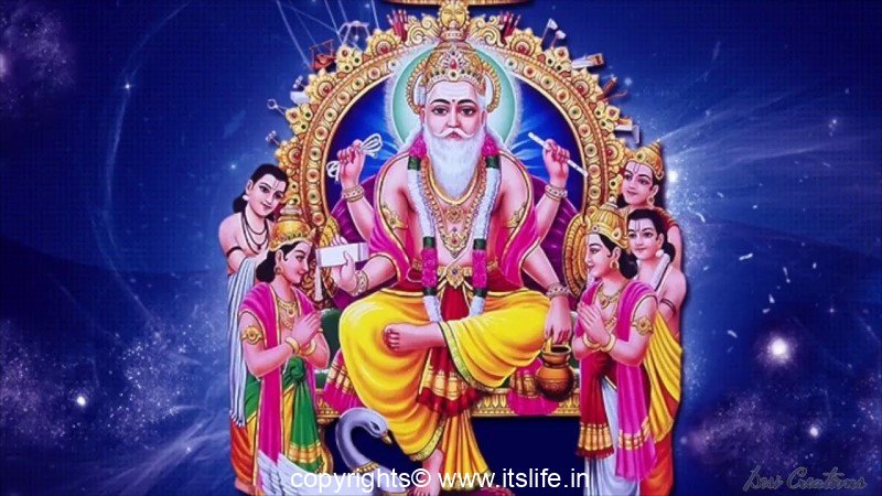 Vishwakarma is the son of Vastu Dev and Goddess Angisri. He is the master of all the engineers, architects, and skilled laborers. It is believed that Lord Vishwakarma helped Brahma create the universe and make a map of the entire world. As per mythology, Lord Vishwakarma constructed the holy city of Dwarka which Lord Krishna ruled. He also created Krishna, Balaram and Subhadra idols installed in Puri Jaganath temple. The Maya Sabha of the Pandavas was also created by Vishwakarma. The Sthaptya Veda portion of the Rig Veda, which is the science of mechanics and architecture was also formed by Lord Vishwakarma.