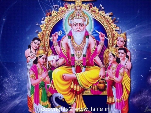 Vishwakarma is the son of Vastu Dev and Goddess Angisri. He is the master of all the engineers, architects, and skilled laborers. It is believed that Lord Vishwakarma helped Brahma create the universe and make a map of the entire world. As per mythology, Lord Vishwakarma constructed the holy city of Dwarka which Lord Krishna ruled. He also created Krishna, Balaram and Subhadra idols installed in Puri Jaganath temple. The Maya Sabha of the Pandavas was also created by Vishwakarma. The Sthaptya Veda portion of the Rig Veda, which is the science of mechanics and architecture was also formed by Lord Vishwakarma.