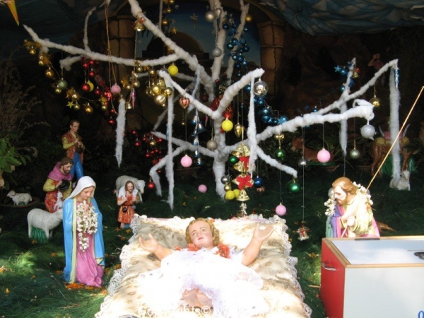 At homes cribs are built and decorated. A baby doll, representing infant Jesus is placed inside the crib. Cakes and cookies are baked; sweets are prepared and distributed to neighbors and friends.