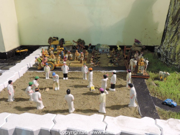 World cup Cricket has commenced in India and what better way to wish the Indian team “Good luck” than arranging the Cricket grounds with players as part of the doll arrangement!