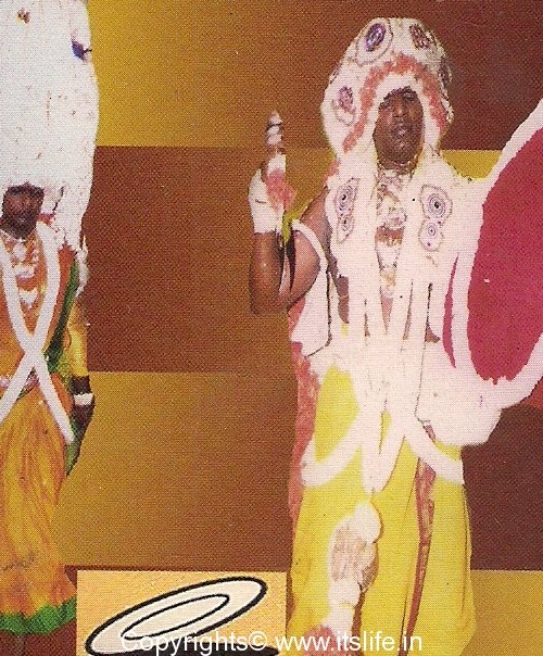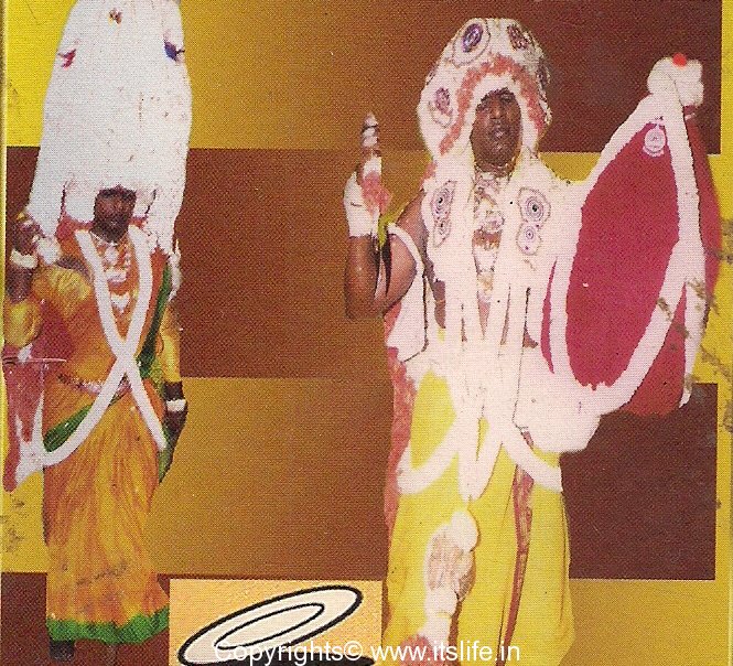 The ritual pot filled with water and adorned with decorations several feet high is carried by the priest. The priest wears a colorful costume and dances to the turns of Nadhaswaram. The Karagam dance is very popular in Tamil Nadu, Pondicherry, Andhra Pradesh (Garagalu) and Karnataka (Karaga).