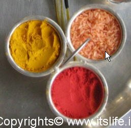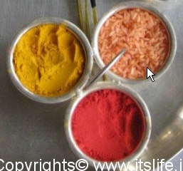 Picture1 – Arishina, Kunkuma, Manthrakshathe - Kunkuma/Kumkum Powder/Vermilion colored Powder