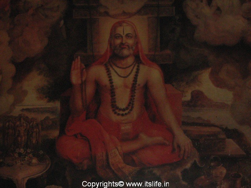 Sri Raghavendra Swamy lived in the 16th century (1595-1671). He is one of the most popular of all Hindu saints who is eulogized as the most compassionate saint who fulfills all wishes like the Kalpavriksha and Cow Kamadhenu . He was an ardent follower of dvaita principle promoted by Madhwacharya. He is believed to be the reincarnation of Prahalada. Prahalada was a great devotee of Vishnu who was saved by Lord Narasimha / incarnation of Vishnu from his notorious father Hiranyakashapu. Sri Raghavendra Swamy was a devotee of Sri Rama and Sri Panchamukha Mukhya Prana Devaru / five faced Hanuman. Affectionately people mention Sri Raghavendra Swamy as Guru Rajaru or Rayaru and the mutta is known as Rayara Mutta.