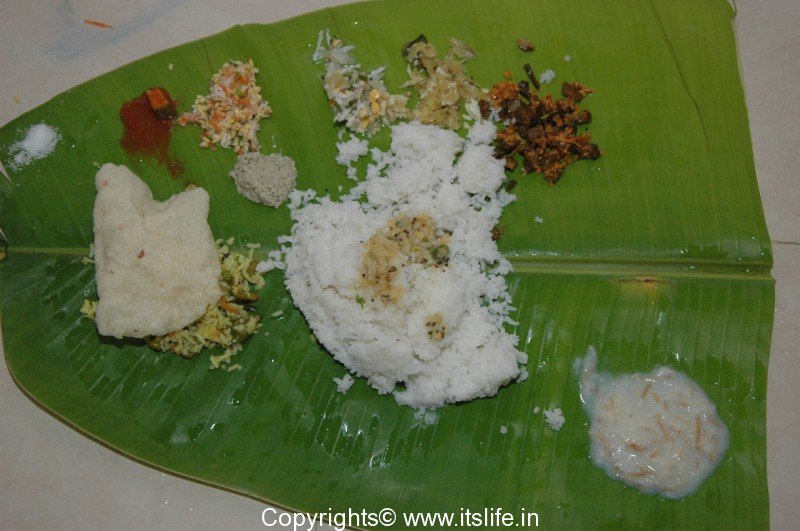 For the last time, the boy is fed by his mother and both of them eat from the same plate. 5 boys, who have had their Upanayana joins them in this bhojana sealing his friendship with the other boys.
