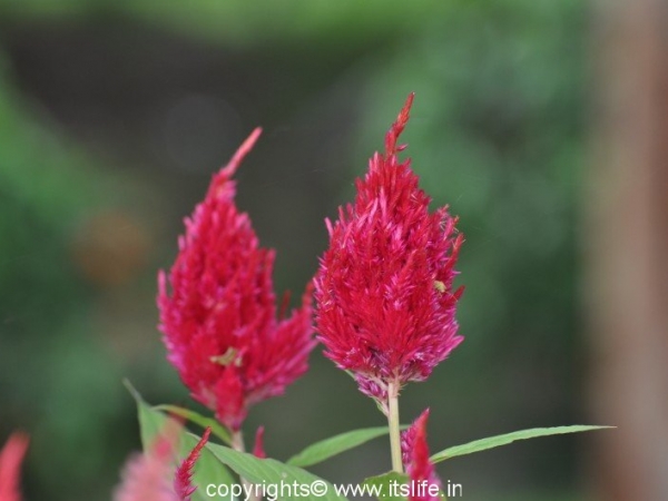 Celosia is an annual erect, branching plants. The leaves are oval or lance-shaped, veined, red or green and they are also edible along with the stems. The leaves and stems are used to prepare dishes in South East Asia and India.