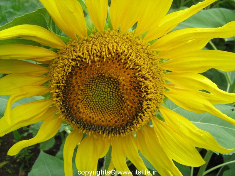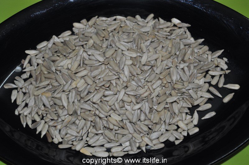 The disk florets produce seeds. These seeds are used to extract the popular edible oil. The seeds are roasted and eaten as a snack. It is also used as bird food.