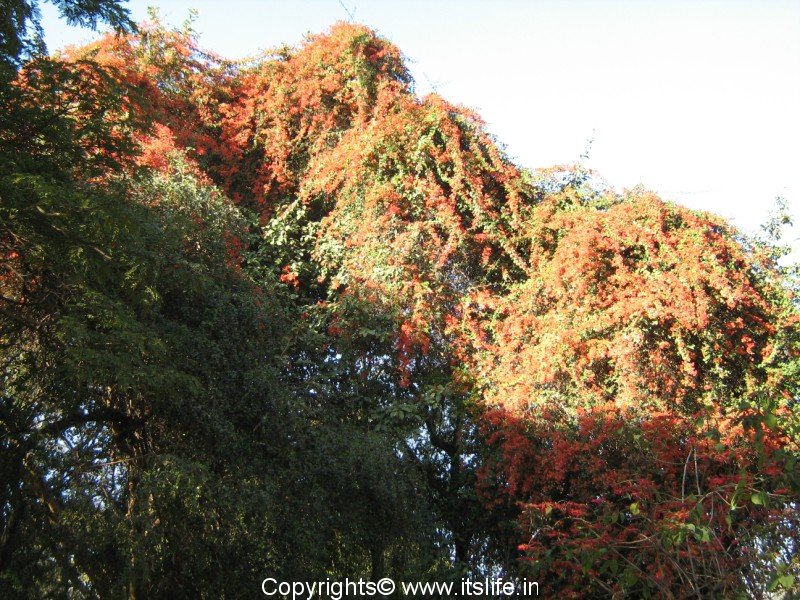 The plant is an evergreen vine and a mature plant’s stems can become knotted and wooded. Bougainvillea grows to a height of 10 – 15 feet. The branches have thorns and cascade with cluster of flowers. Hence it is preferred to grow n hanging baskets, on hedges, or on arches.