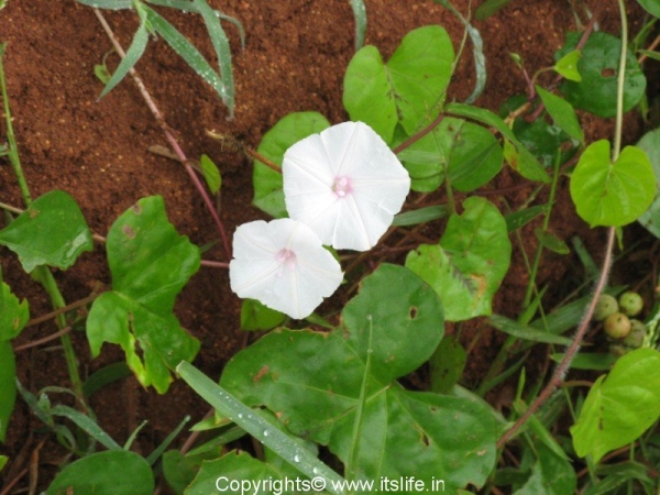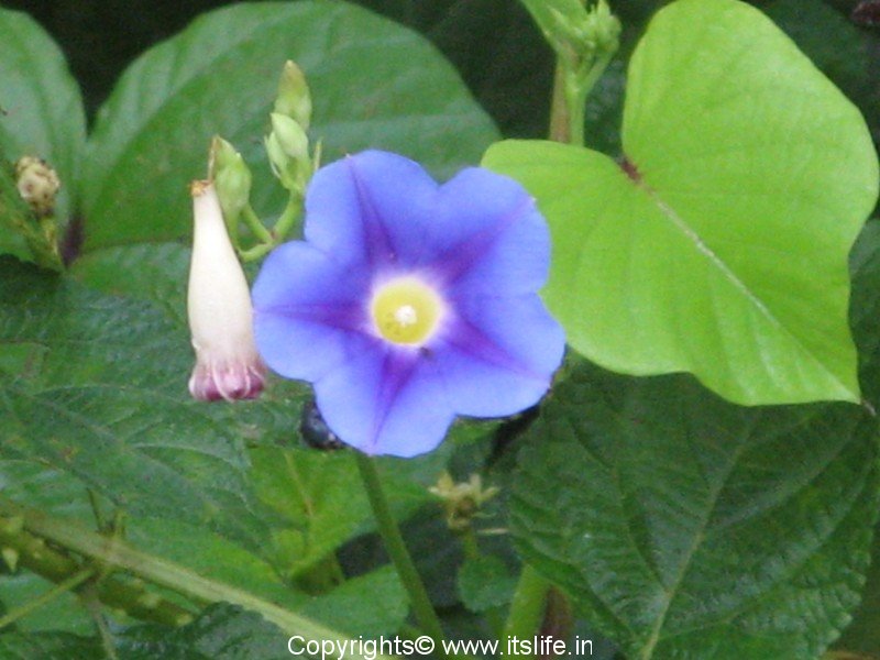 As the name suggests, the flowers bloom in the morning and as the sun rises high the flowers fade and curl. In Kannada it is known as Gowri beeja, Kolli beeja and in Sanskrit it is known as Kalanjani, Krishnabijah.