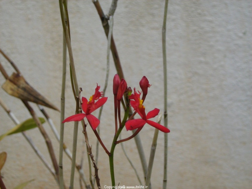 Orchid Epidendron Ibaguense is native to Central and northern South America (Mexico to Columbia) with red, mauve, purple, salmon and yellow hybrids. These orchids can be easily grown in Bangalore and Mysore.