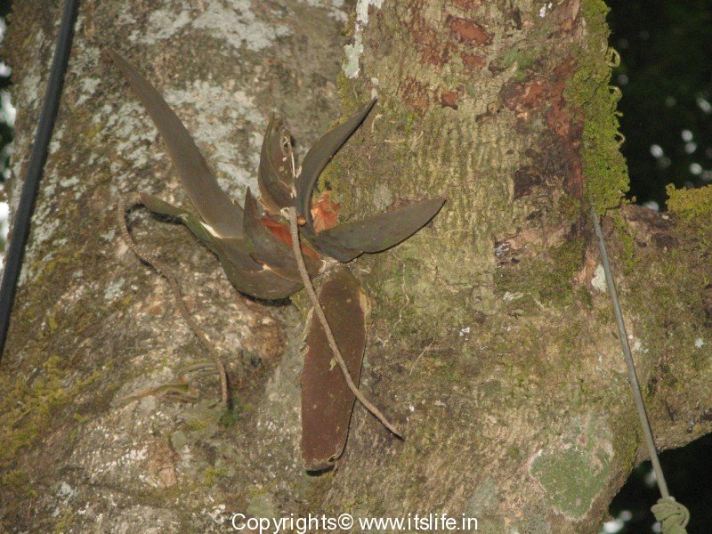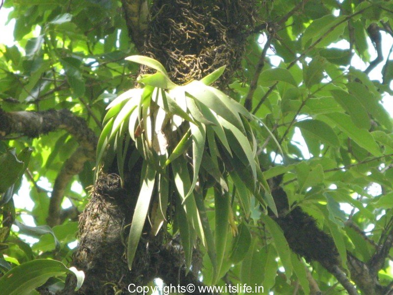 Stem of Oberonia is shot and the roots are fibrous and attached to the moss and bark of the trees. Leaves of Oberonia looks like a human hand hung from a tree. The leaves are Green to reddish, thick, oblong-ovate, pointed and succulent.