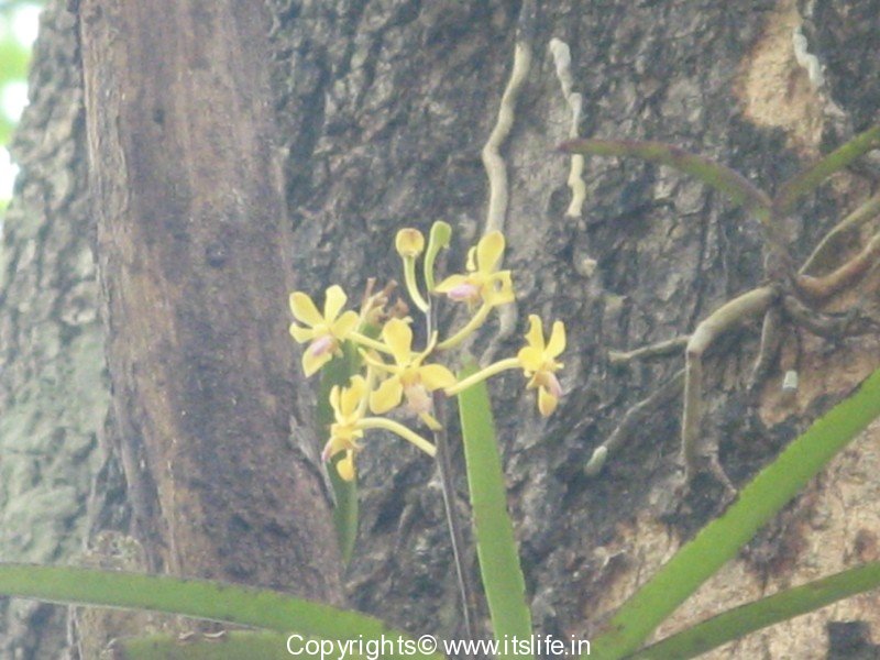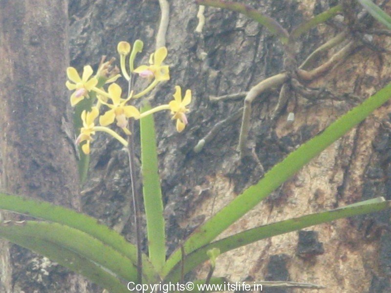 My joy knew no bounds when I found Vanda Testacea plants in full bloom in Bhadra Wildlife Sanctuary. The pale yellow flowers are very very cute. Added to the charm of the flowers is the light fragrance.
