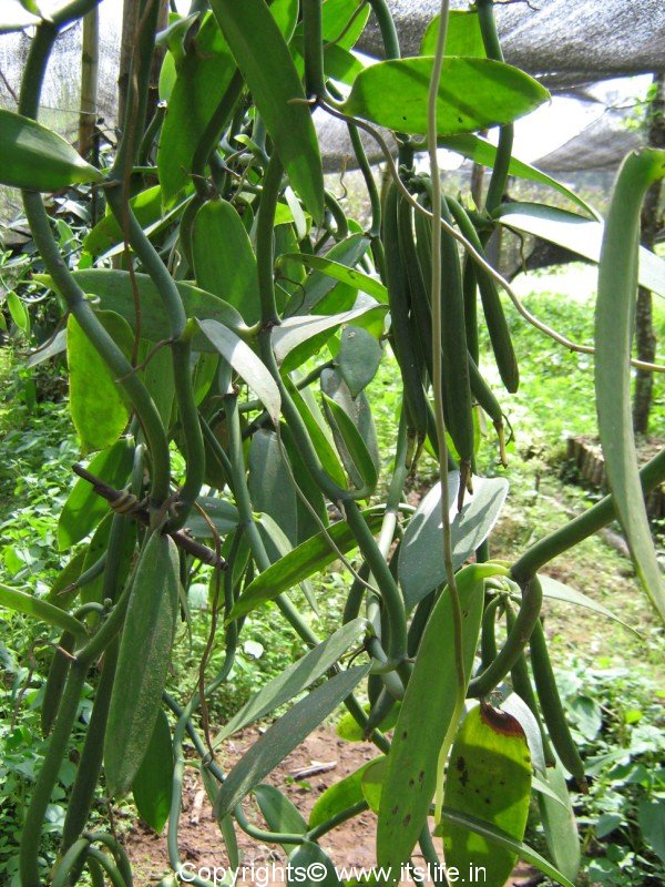 Vanilla can be propagated through stem cutting. Water the plant every two days ensuring proper drainage of water. Vanilla enjoys the high humidity and the plant takes 7 to 8 years to mature. Use a balanced fertilizer like 20-20-20 once in a fortnight. Average growth rate is 3 to 5 feet a year.