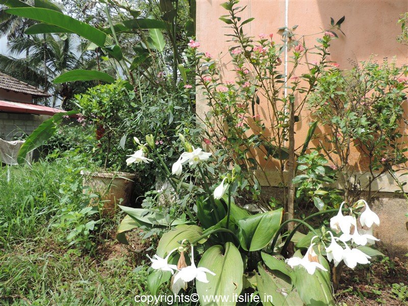 Amazon Lily plant caught my eye in Kammardi, Shimoga district as it looked like a Daffodil and I was sure that Daffodils don’t grow in South India. I took few pictures and got to know that it is the Amazon Lily.