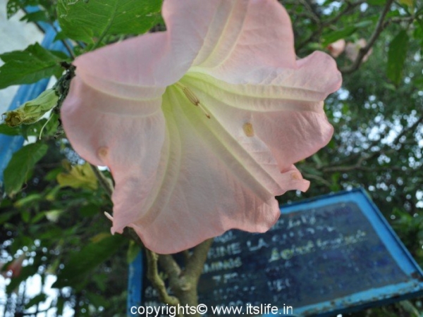 Brugmansia is the botanical name and belongs to Solanaceae family. Datura is a close relative of this plant. Angel’s Trumpet is native of South America.