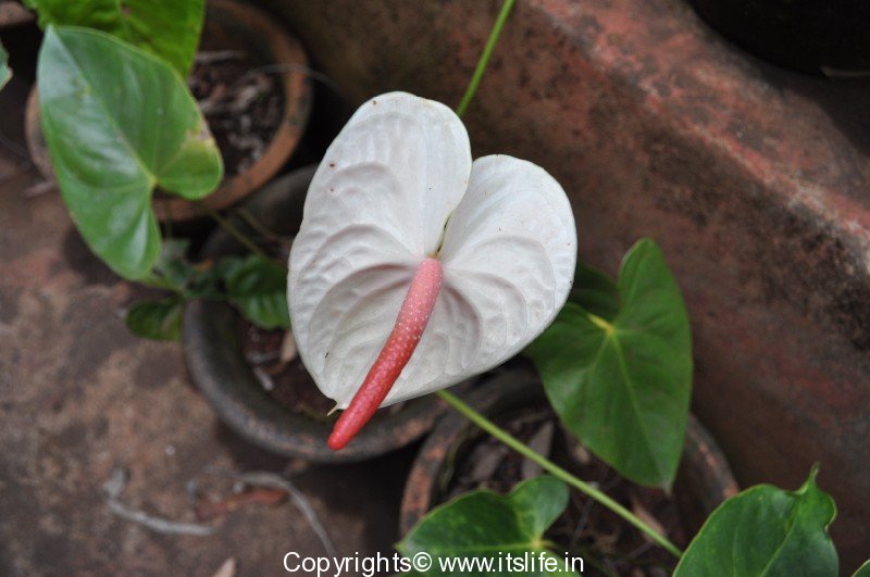 Anthurium is originally form American tropics and it is an evergreen, tropical herbaceous plant belonging to the family Araceae*. The name Araceae is derived from the Greek legend – Anthos the flower and Oura the tail indicating the flowers with a tail. The genus Anthurium has 600 species which are distributed worldwide. The botanical name is Anturium andreanum.