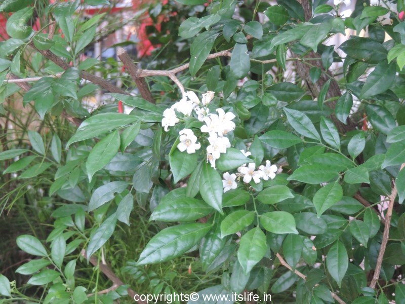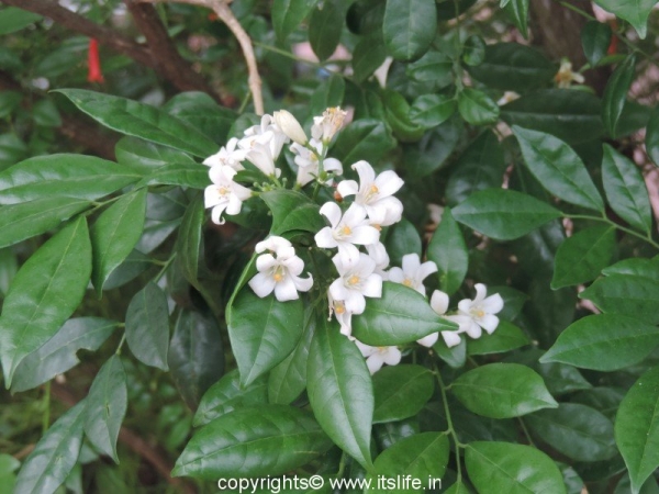 Botanical name is Murraya paniculata and belongs to Rutaceae (citrus) family.