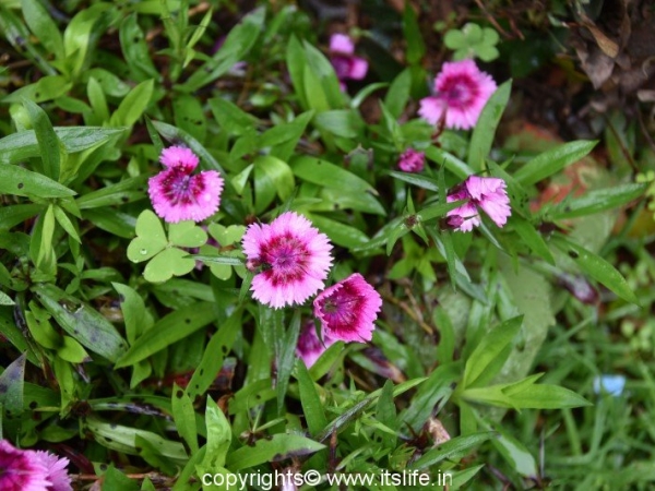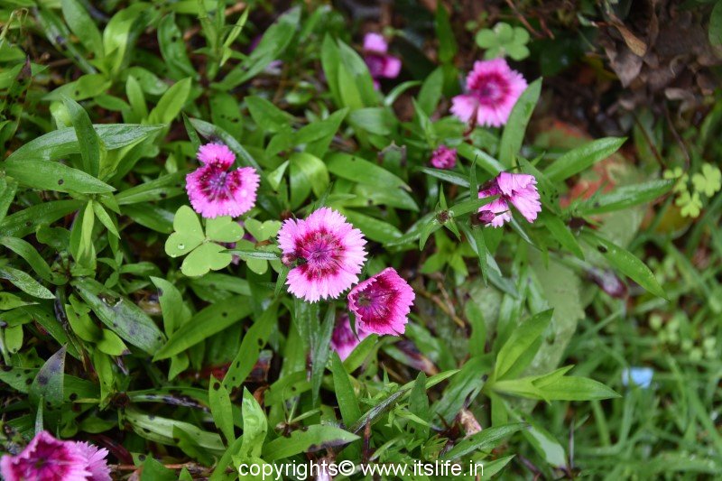 Dianthus is also known as China Pink, Indian Pink, Chinese pink, Rainbow Pink. The botanical name is Dianthus chinensis and belongs to Caryophyllaceae (Carnation) family.