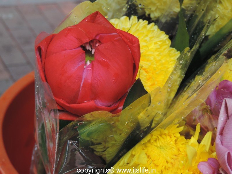 Picture – Red Lotus near a Buddhist Temple in Singapore