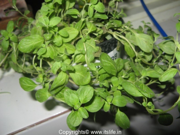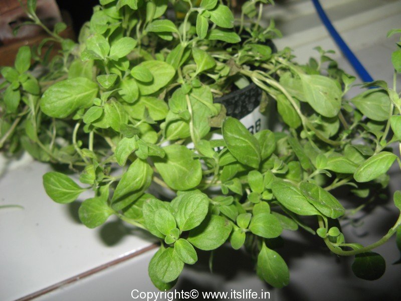 The plant grows to a height of 30 to 80 cms with multiple branches. If the branches come in contact with soil, they root there and spread across. Leaves are fragrant, small, greenish grey, and oval. The flowers are extremely tiny and look like knots, giving the plant another name “Knotted Marjoram”.