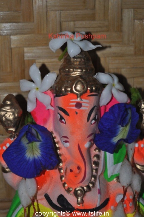 Nandi Battalu flower is offered to Lord Ganesha during the 21 Pushpa Pooja while chanting the below mantra: “Om Avyaya Namaha, Kshirika Pushpam Samarpayami”.