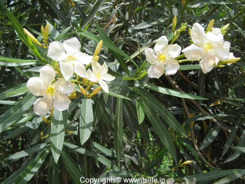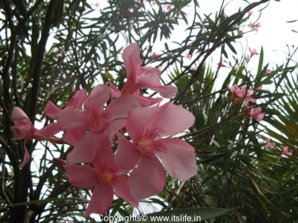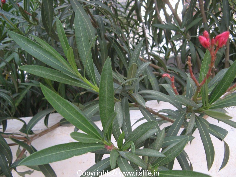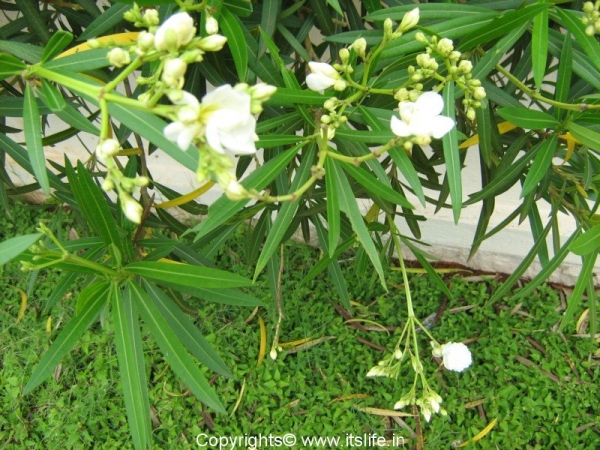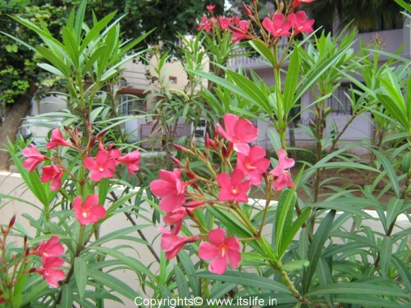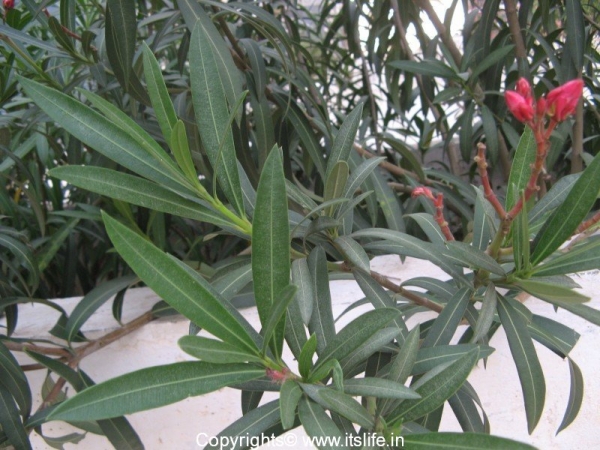 Oleander is planted as an ornamental plant. A dwarf variety is very popular among gardeners as they grow to a height of 3 – 4 feet and start to bloom quickly. In India the flowers are used to make garlands and are offered to Gods.