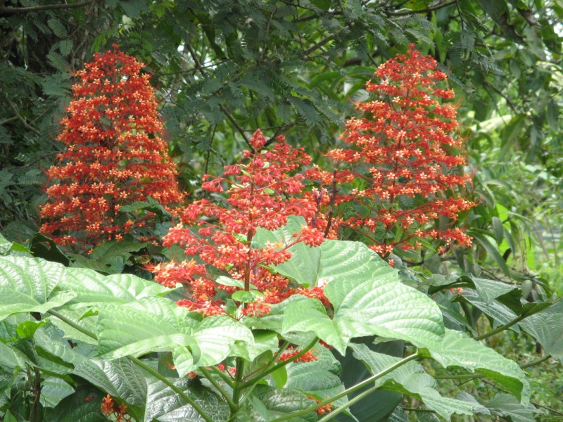 Pagoda flower botanical name is Clerodendrum paniculatum and belongs to Verbenaceae family. This grows like a weed in most parts of the Western ghats adding color and attracting the beautiful giant butterflies. Pagaoda flower plant is a native of Sri Lanka, Malaysia and southeast Asia. I have seen these plants in bloom in Varadahalli, Kavadi Kere, Kodachadri, Goa and so on.