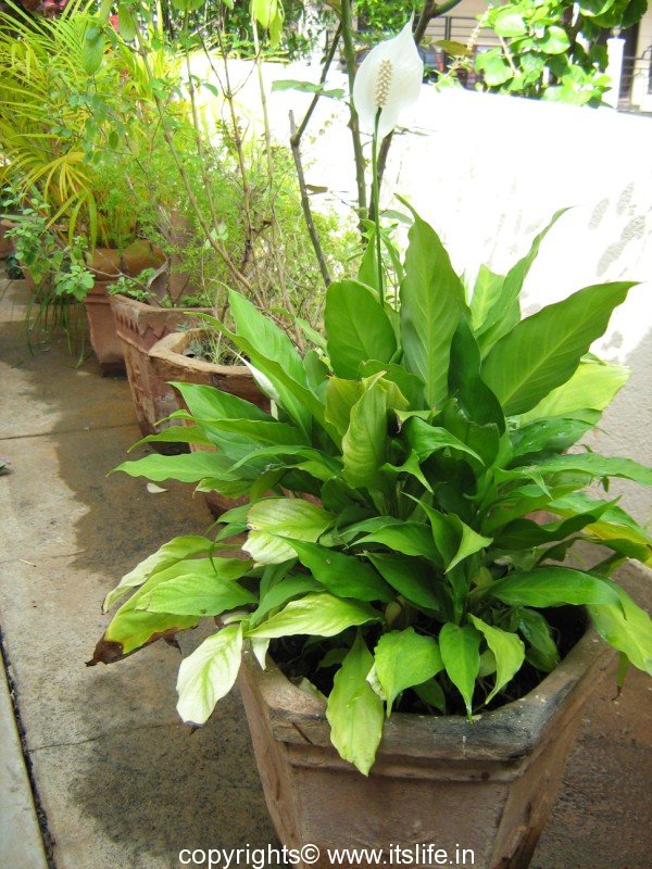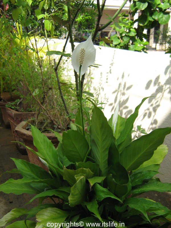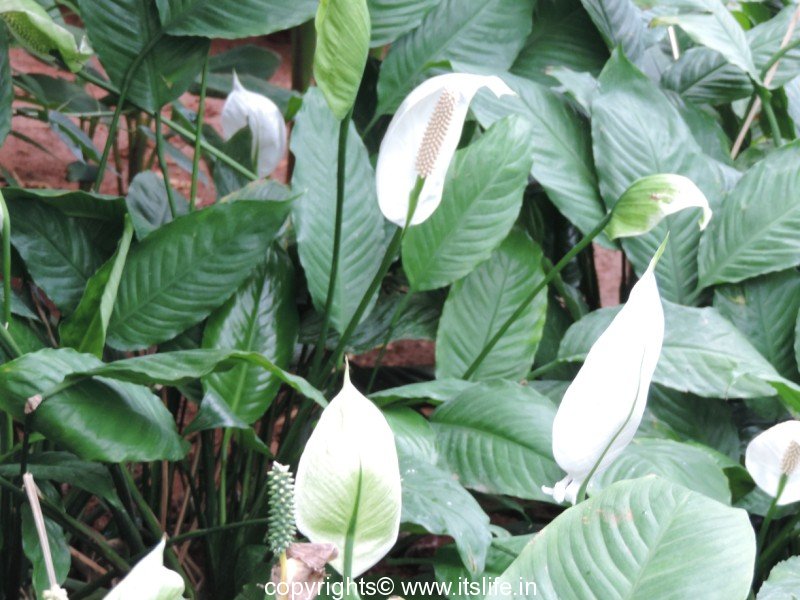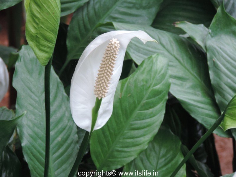 Botanical name is Spathiphyllum wallisii and belongs to Araceae family. Peace Lily are evergreen perennial plants with large attractive leaves. The leaves grow directly from the root and are green, glossy and oval.
