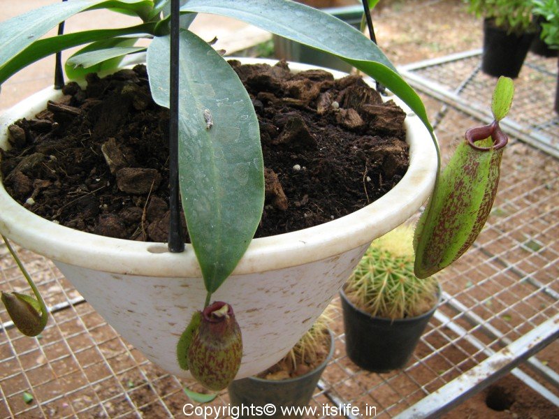 It is ideal to pot this plant in a hanging pot. The hybrid varieties do not possess the characteristic of trapping insects.