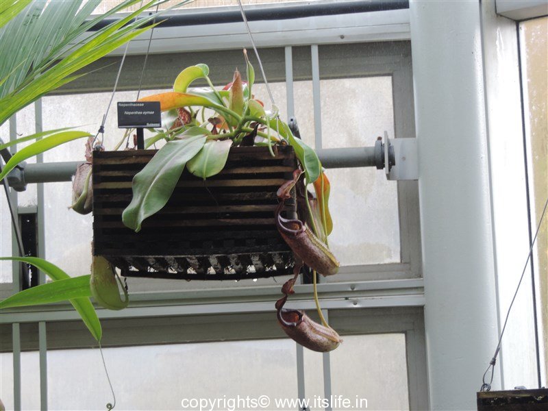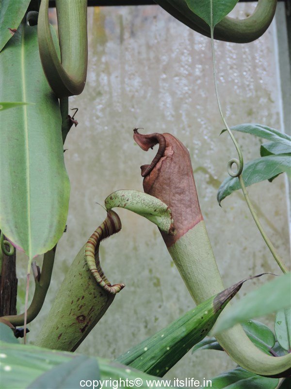 Since the time I had read about insectivorous plant, Pitcher plant, I wanted to see one. I got to see one in one of the flower exhibitions held in Lalbagh, Bangalore.