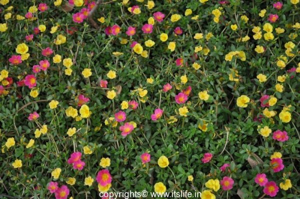 We used to call this as Table Rose, maybe because the flower looks like a rose and also covers the ground and does not grow tall!