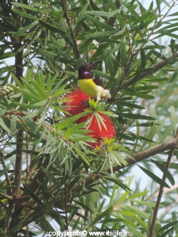 The dark green leaves are thin, pointed, and grows upwards with a lemony aroma. The most attractive part of the plant/tree is the flowers. Bloom time is from spring to summer, but I have seen the tree blooming throughout the year. The flowers are cylindrical spikes with flowers resembling the bottle brush bristles.