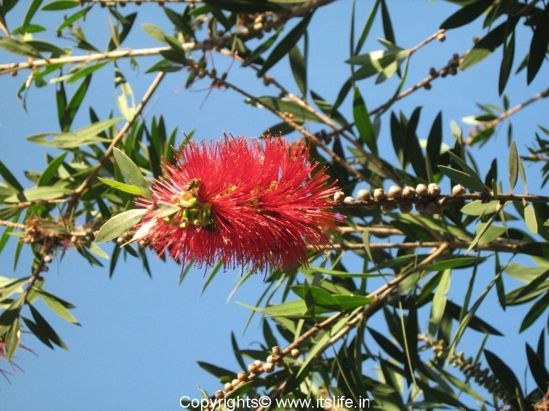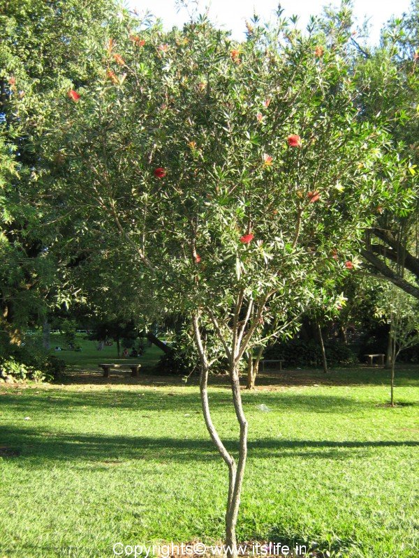 Bottle Brush plant also known as Lemon Bottlebrush and Cheel in Hindi is a most sought after plant to landscape gardens. The botanical name is Callistemon viminalis and the plant belongs to family Myrtaceae.
