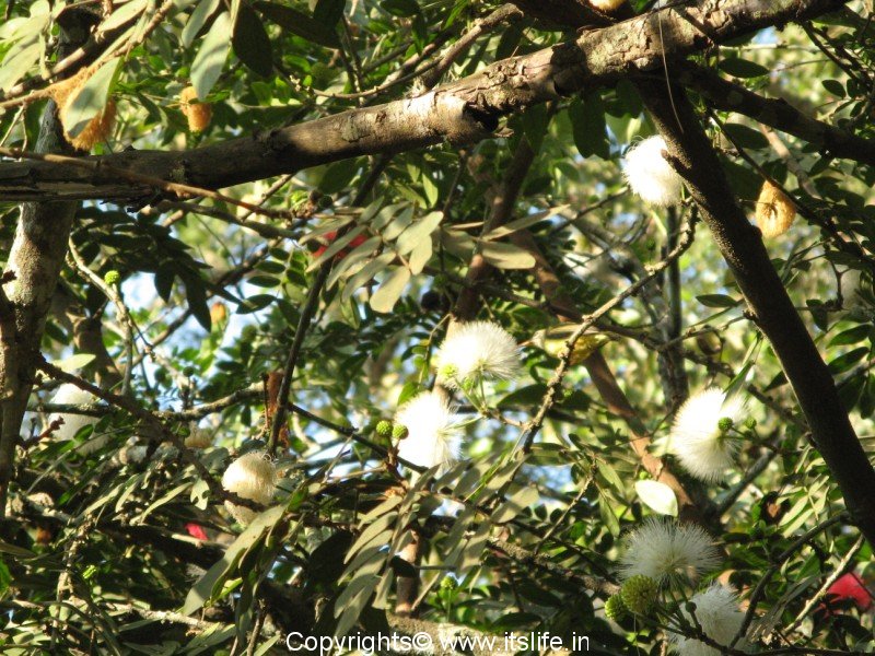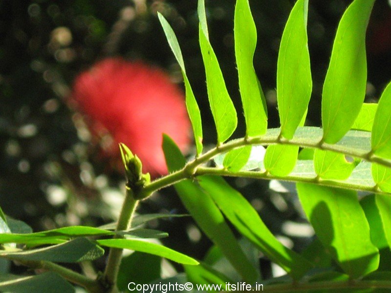 This evergreen shrub is grown for the attractive flowers that look like powder puff. The plant grows fast upto 15 feet in height. The leaves are light green and grow up to 2-3″. The flower bud looks like berries. The flowers are a mass of red stamens, like a small puffy ball and will be around 3 to 4 inches in diameter. Blooms around the year and are in red, pink and white. The fruit looks like a bean pod.