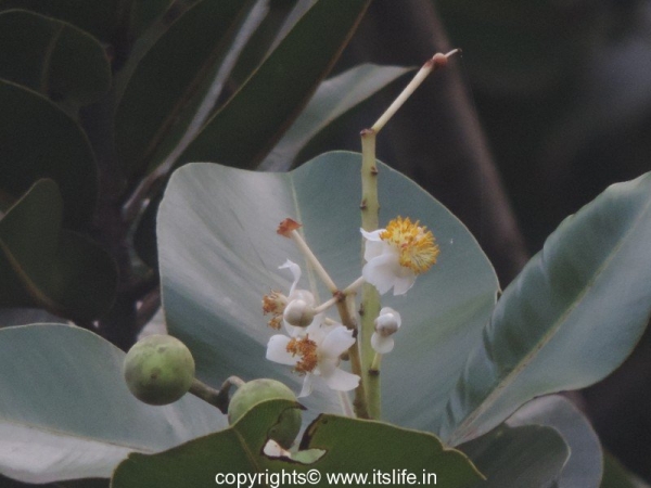 Punnaga Tree is native of East Africa, Southern Coastal India, Malaysia, and Australia. The botanical name is Calophyllum inophyllum and belongs to Clusiaceae (Garcinia family) or Calophyllaceae.