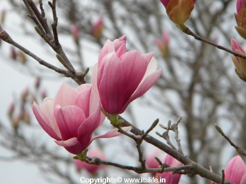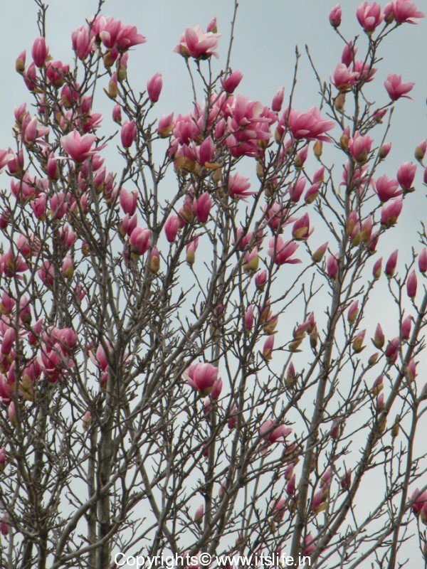 Saucer Magnolia also known as Alexandrina is a hybrid plant in the Magnolia genus. During spring, these trees attract a lot of attention as they are completely covered with Pink blooms.