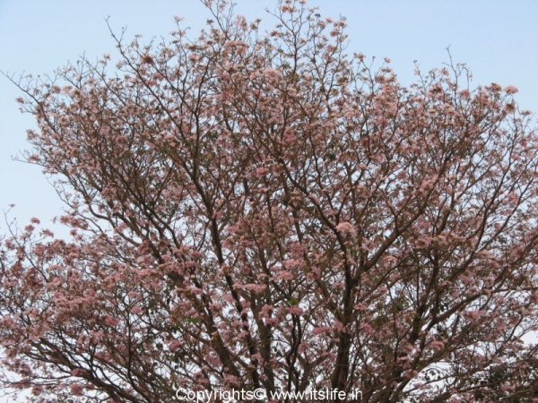 Tabebuia Rosea is also known as the Pink Trumpet Tree, Pink poui, Pink tecoma, Rosy trumpet tree. In Hindi this tree is known as Basant Rani.