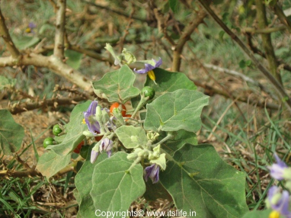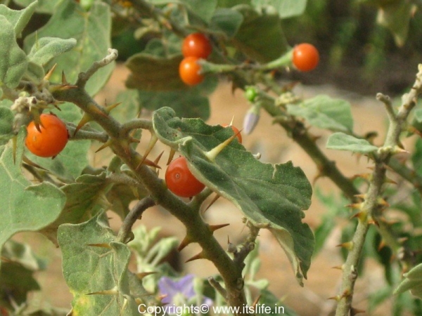 Brihati grows wild throughout India. Brihati is a prickly shrub that grows to a height of 1.5 mtrs and belongs to Solanaceae (potato) family. Botanical name is Solanum Anguivi. English common name is Poison berry.