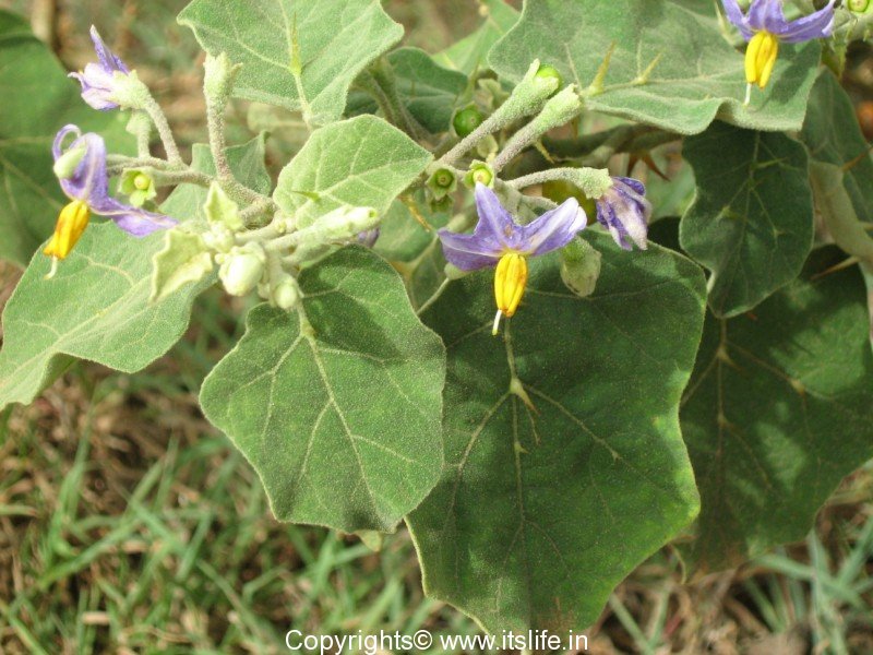 The leaves of this plant are offered to Lord Ganesha during 21 patra (leaves) puja while chanting “Om Ganadhipaya namaha – Brihati Patram Samarpayaami”.