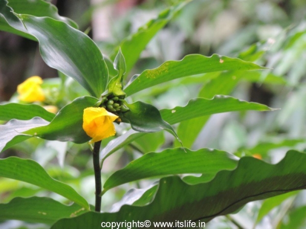 I came across this unusual and attractive plant growing wild in Padubidiri. The other common name of Crepe Ginger is Malay Ginger. Crepe Ginger is known as Kusht, Keokanda in Hindi, Koshi in Marthi, Changlakoshta in Kannada and Kushtha in Sanskrit. Costus speciosus is the botanical name and belongs to Costaceae (Spiral Ginger) family. Crepe Ginger is native of India and the South East Asia.